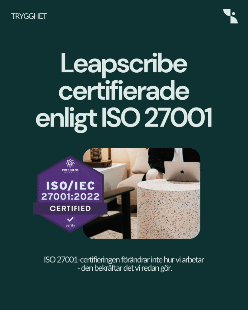 Leapscribe certifierade enligt ISO 27001